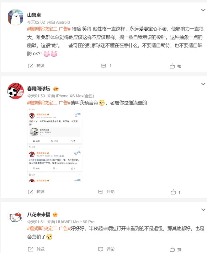 【诸多媒体、大V、名嘴都在等待勒布朗这个决定二,因为今夏他没有跟湖人达成续约,不少人预测勒布朗可能是要决定明夏退役开启退役巡演,这导致湖人常规赛最后一场的球票从85美元上涨到400多美元,结果勒布朗决定二只是个广告,这谁受得了】